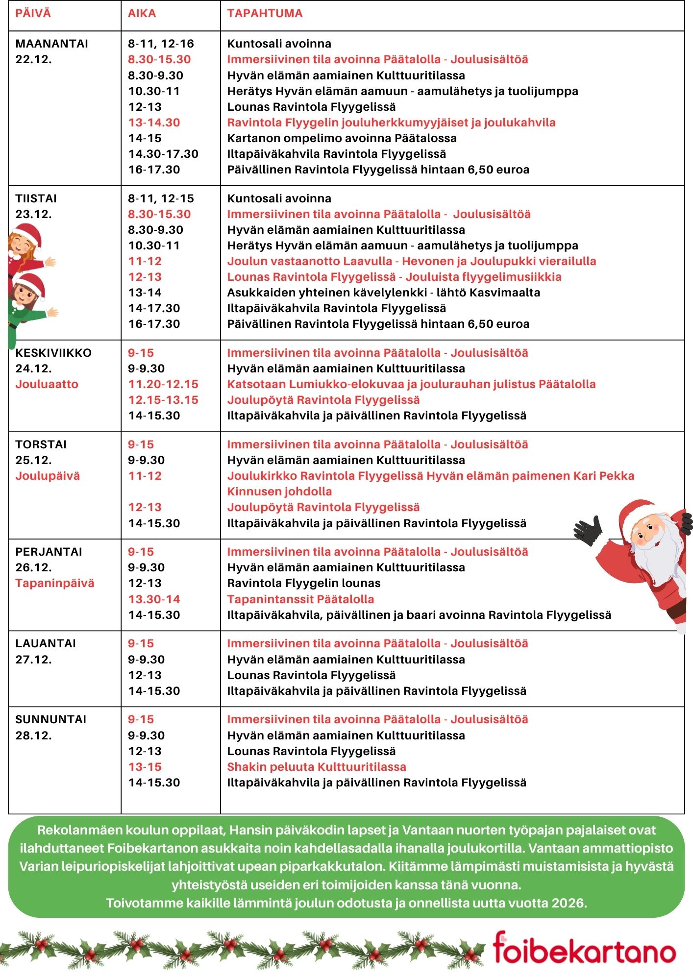 Foibekartanon Joulupolkutapahtumat 2025